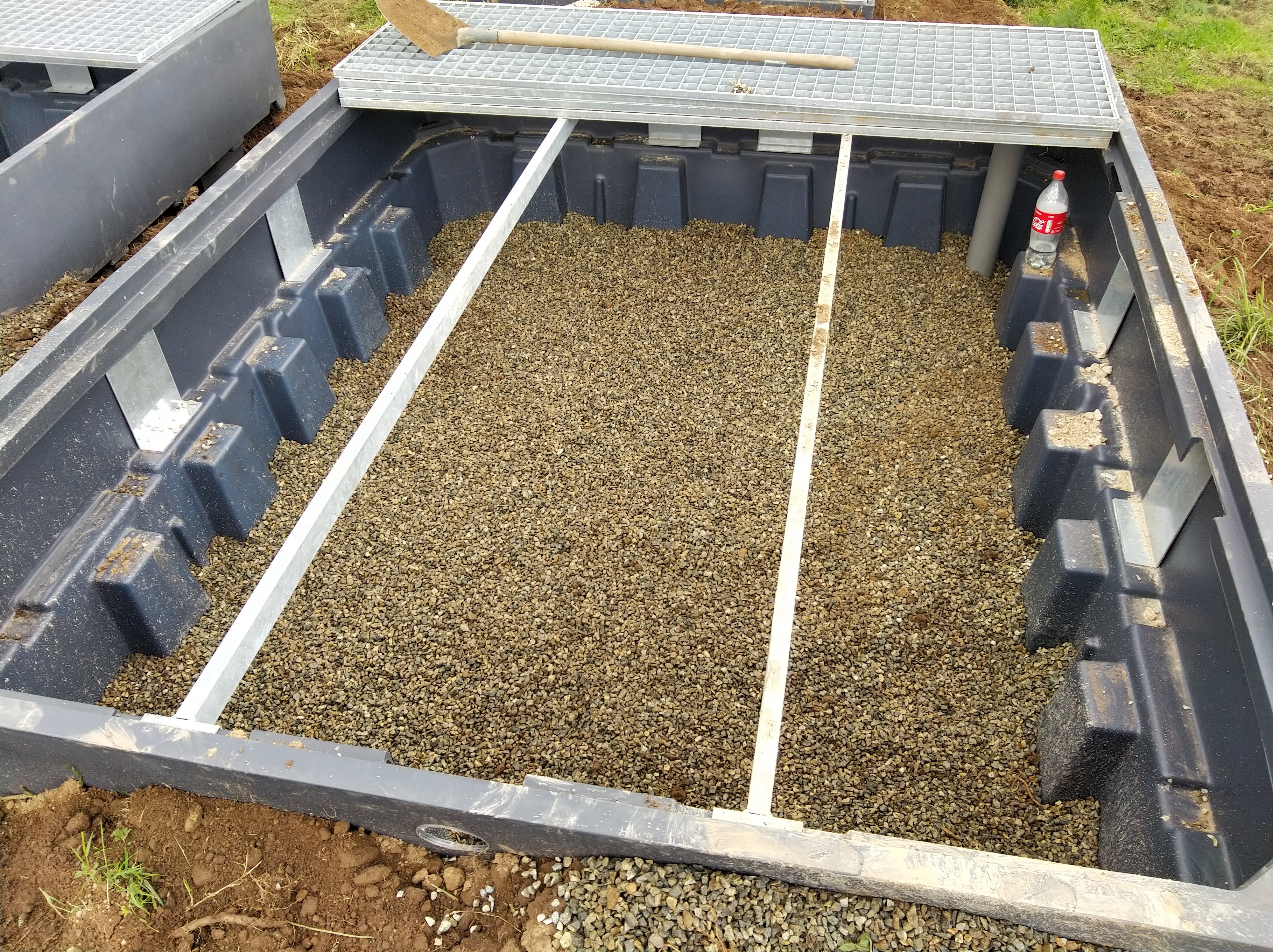 Tout naturellement le choix d’un assainissement s’est porté sur une phyto-épuration plus cohérente avec les valeurs portées par la démarché biologique. En auto-construction, le coût est similaire à un assainissement conventionnel.